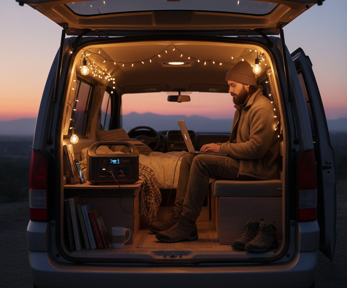 Su diseño moderno, con detalles en negro y naranja, es elegante y funcional. La pantalla iluminada permite leer los valores incluso de noche. Perfecta para quienes valoran la autonomía energética tanto en casa como al aire libre.
