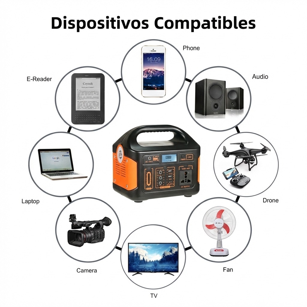 - Potencia Continua de 500W: Suficiente para alimentar laptops, drones, ventiladores y herramientas pequeñas.