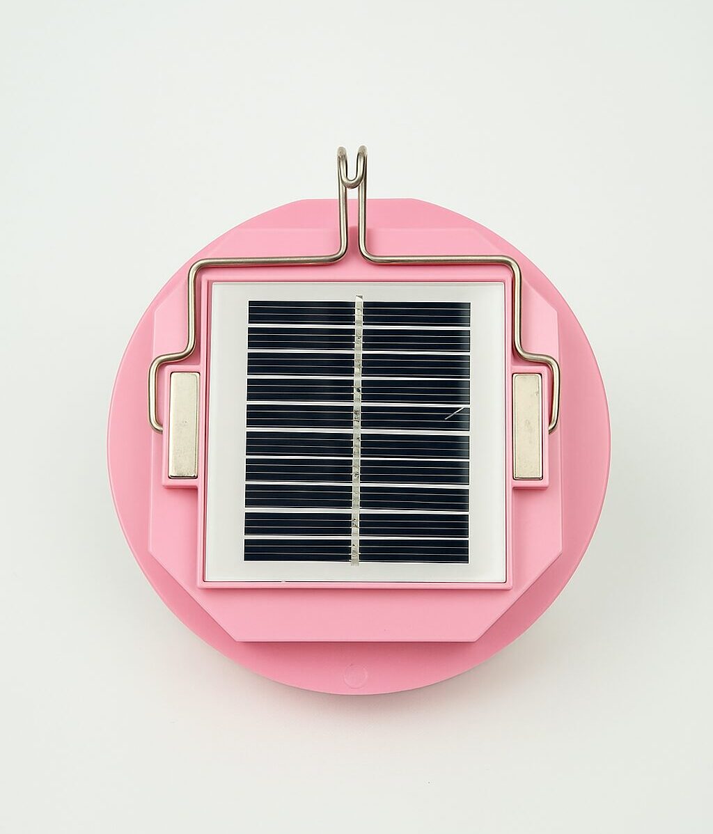 Descubre la Lámpara Led Solar Recargable en color rosa, ideal para iluminar tu espacio exterior de manera ecológica y eficiente.